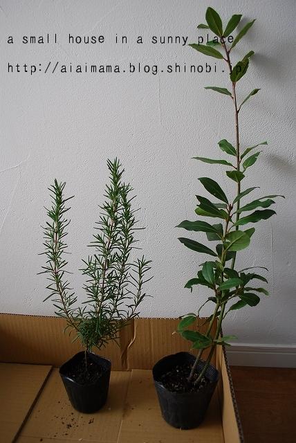 木立性のローズマリー(左) と 月桂樹(右)をゲット