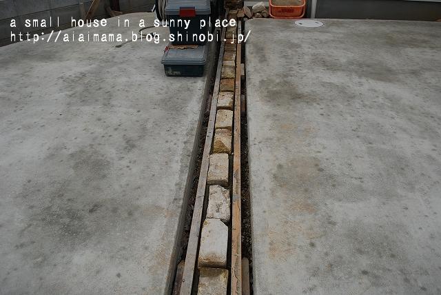 真ん中にレンガを一列に並べて