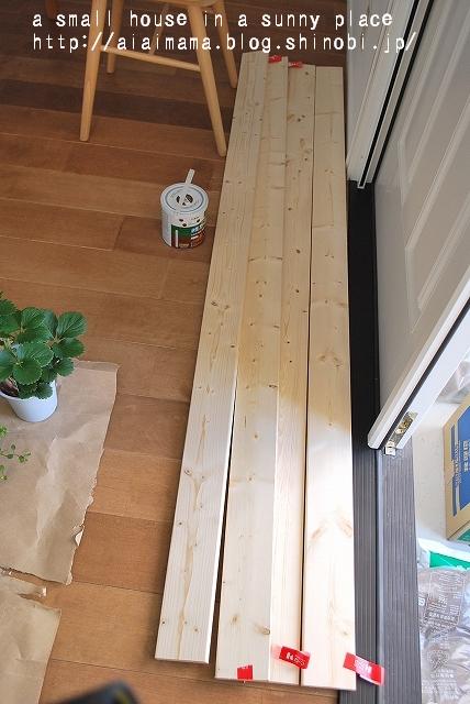 180cmほどの板 × 4 (1枚 ¥198)