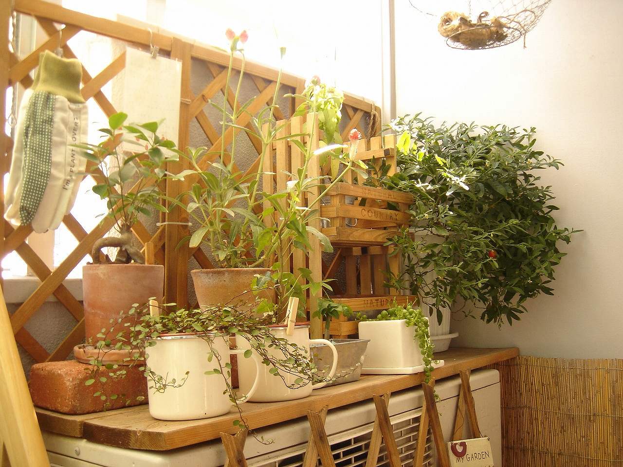 自分なりに植木鉢を工夫してみたり、雑貨を飾ったり。